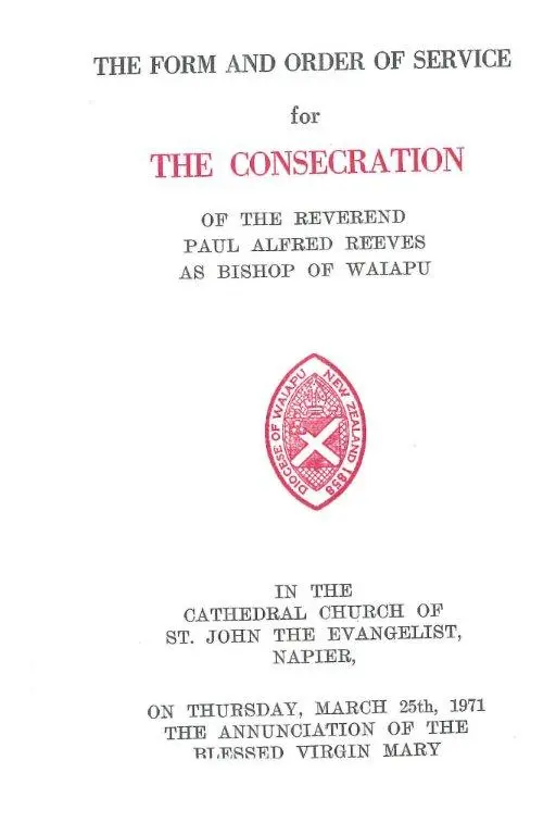 Sir Paul’s Certificate of Consecration as Bishop of Waiapu on March 1971 and other related documents are also held in the archive. Papers relating to his role as a diocesan bishop both in Waiapu and Auckland are held in the archives of the Diocese of Waiapu and the Diocese of Auckland.